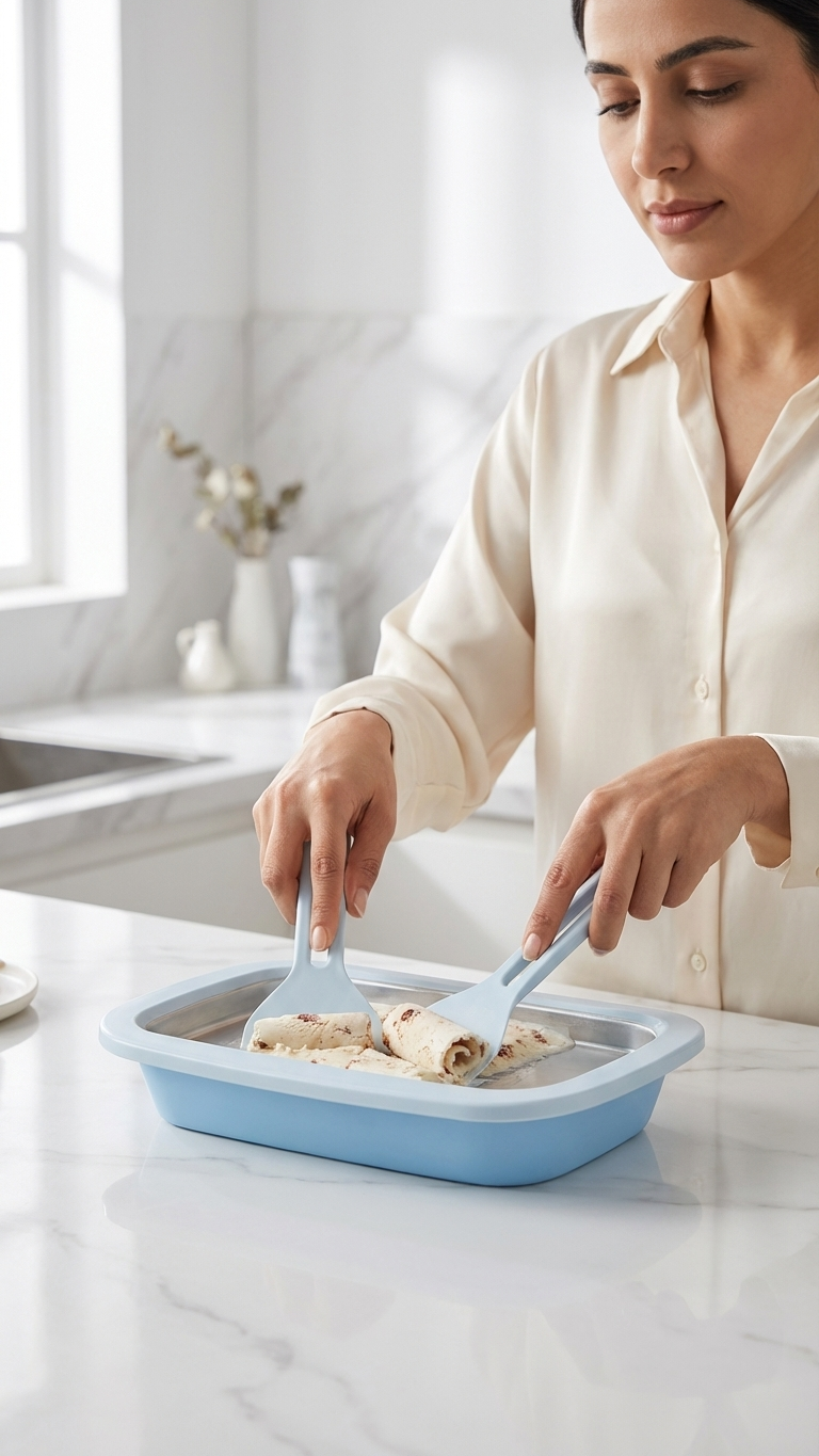 - سهولة الاستخدام: لا تحتاج لتعقيدات؛ فقط صب المكونات في المقلاة المبردة واخلطها حتى تتجمد.